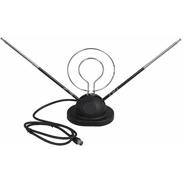 Технические характеристики Антенна ТВ комнатная RX-105 телескопич. на подставке с кольцом VHF; UHF 47-860 MHz REXANT 34-0105