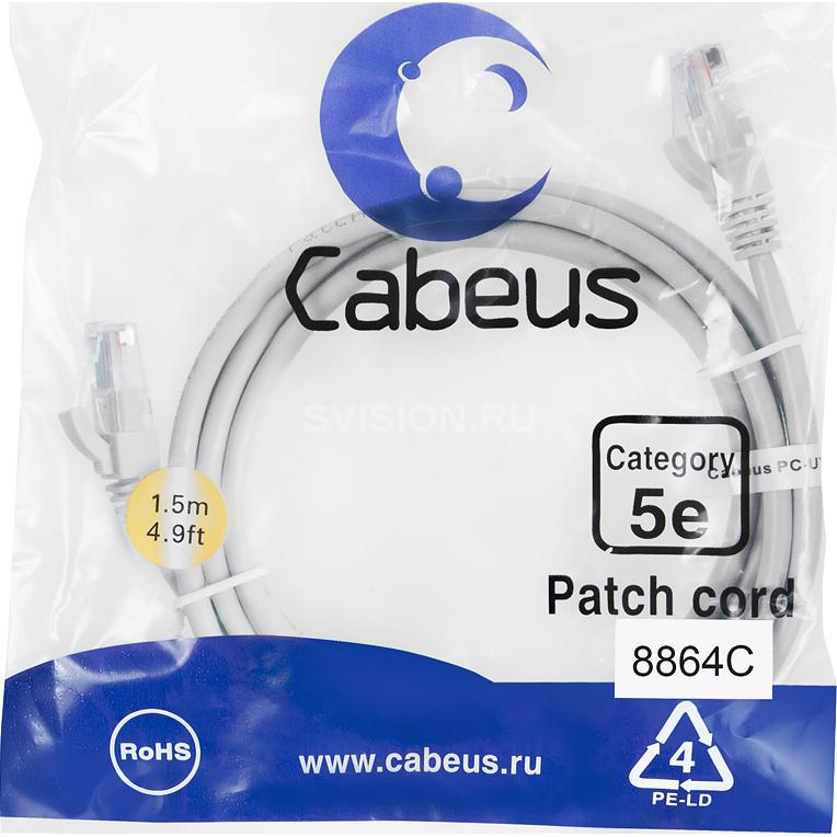 Cabeus PC-UTP-RJ45-Cat.5e-1.5m-LSZH Патч-корд U/UTP, категория 5е, 2xRJ45/8p8c, неэкранированный, серый, LSZH, 1.5м