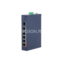 6-портовый защищённый коммутатор с облачным управлением и 4 портами PoE. Порты: 4 RJ45 10/100Мбит/с (PoE/PoE+/Hi-PoE), 1 RJ45 10/100/1000Мбит/с (uplink), 1 SFP 1000Мбит/с (uplink); мощность PoE: порт 1 до 60Вт, порты 2~4 до 30Вт, суммарно до 60Вт; PoE watchdog, передача до 250м; питание: 48~57В(DC); грозозащита: до 6кВ; рабочая температура: -30°С~+65°С; IP30, IK06; монтаж на DIN-рейку
