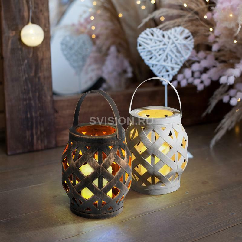 Описание Фонарь декоративный со свечкой плетеный корпус бел. 14х14х16.5см бел. Neon-Night 513-057