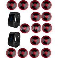 1. Состав комплекта Комплект системы вызова персонала включает в себя: 2 влагозащищённых наручных пейджера iBells 69 и 15 влагозащищённых кнопок вызова iBells 315 (вишня). Комплект подойдет для любого заведения, где может потребоваться вызов персонала посетителями: в кафе, ресторане, отеле, фитнес центре, в супермаркете или магазине одежды, в медицинском учреждении и тд. Также система подходит для организации связи между персоналом. 2. Принцип работы При настройке системы каждая кнопка подключается к пейджеру под определенным номером. При необходимости посетитель нажимает на кнопку, и ответственный сотрудник получает вызов. 3. Преимущества системы - Беспроводные системы iBells помогают решить проблемы сервиса -повышают качество и скорость обслуживания. - Оборудование работает по радиосвязи, сигнал свободно проходит по всем помещениям. - В кнопках и пейджерах предусмотрено автономное питание — никакой проводки не требуется. - Систему легко масштабировать и совершенствовать. Достаточно добавить дополнительные кнопки вызова и приёмники (пейджеры, табло, пульты). 4. Настройка и установка Пейджер легко программируется по инструкции. Кнопка вызова не требует сложной установки и специального монтажа- крепится на двусторонний скотч. Радиус действия данного комплекта около 100 метров. При необходимости возможно увеличение радиуса действия в 1,5 раза с помощью усилителя сигнала iBells 401.