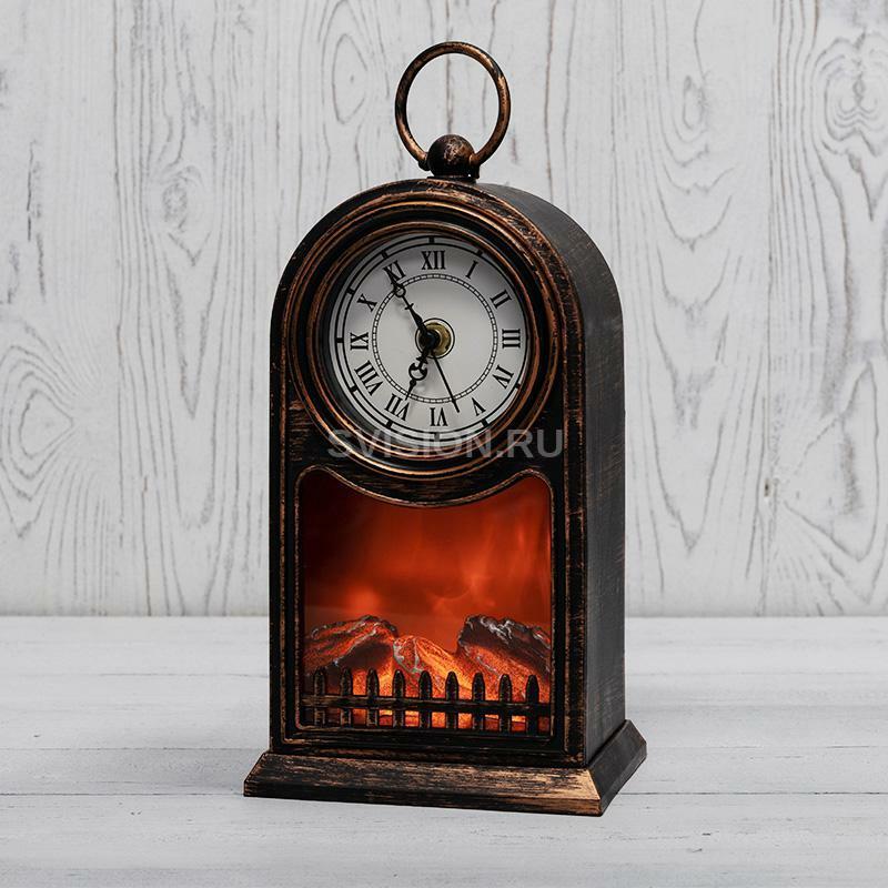 Описание Камин светодиодный "Старинные часы" 14.7х11.7х25см с эффектом живого огня бронза батарейки 2хС (не в комплекте) USB Neon-Night 511-021