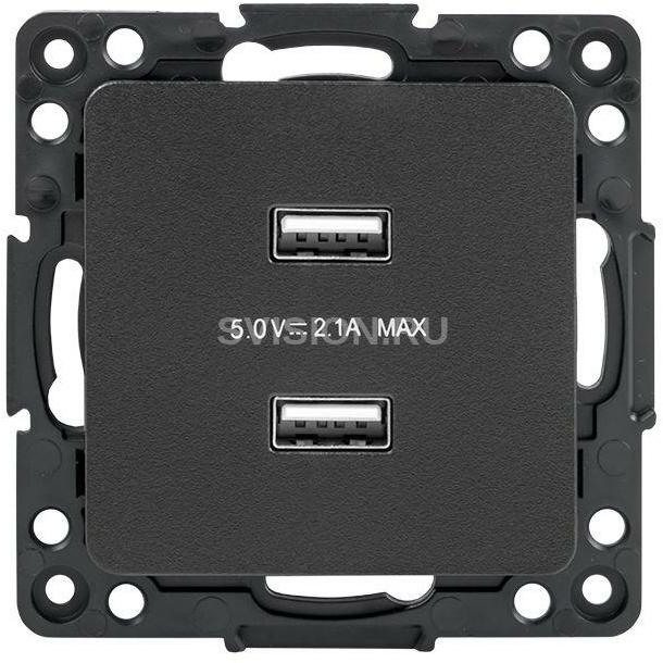 Описание Механизм розетки USB 2-м Стокгольм 2.1А черн. PROxima EKF EZR16-028-10-2USB