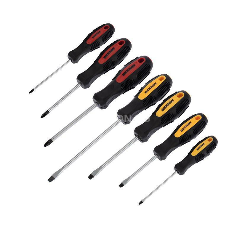 Описание Набор отверток 7 предметов (крестовые и шлицевые) Rexant 12-4703
