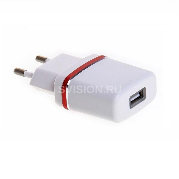 Технические характеристики Сетевое зарядное устройство USB (СЗУ) (5 V, 1000 mA) белое с красной полоской (18-2211)