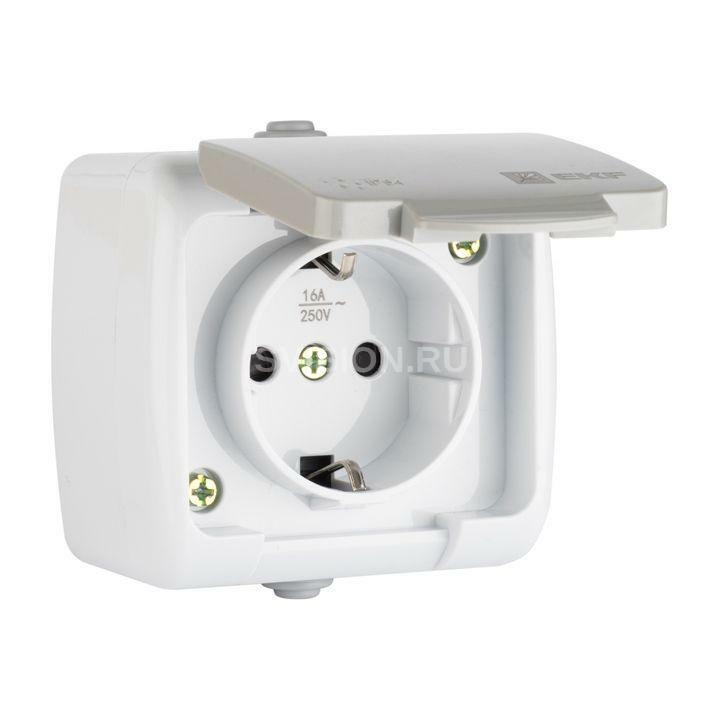 Описание Розетка 1-м ОП Мурманск 16А IP54 с заземл. защ. шторки с крышкой сер. EKF EFR16-029-30-54