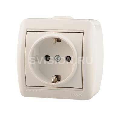 Описание Розетка 1-м ОП Ната 16А IP20 с заземл. керамика бел. LEZARD 710-0200-122