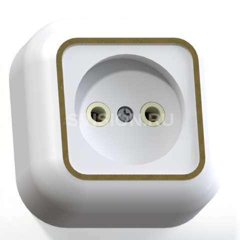 Описание Розетка 1-м ОП Валентина РА10-266 10А IP20 бел./зол. Кунцево 7639