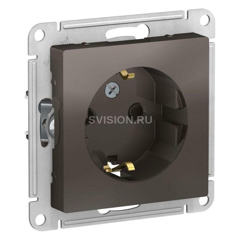Описание Розетка 1-м СП AtlasDesign 16А IP20 с заземл. защ. шторки механизм мокко SE ATN000645
