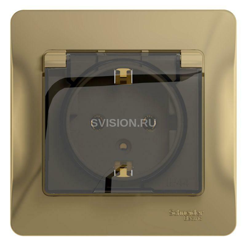 Описание Розетка 1-м СП Glossa 16А IP20 с заземл. защ. шторки с крышкой в сборе титан SE GSL000446