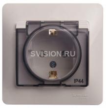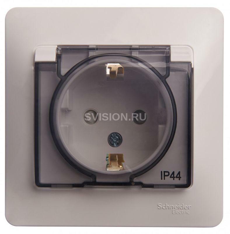 Описание Розетка 1-м СП Glossa 16А IP44 с заземл. защ. шторки с крышкой в сборе бел. SE GSL000148
