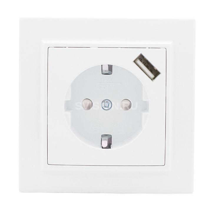 Описание Розетка 1-м СП Минск 16А IP20 с заземл. защ. шторки с заряд. устройством USB 1А бел. EKF ERR16-028-100-USB