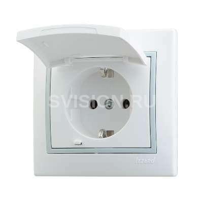 Описание Розетка 1-м СП Мира 16А IP20 с заземл. с крышкой с сер. вставкой керамика бел. LEZARD 701-0215-123