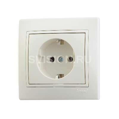 Описание Розетка 1-м СП Мира 16А IP20 с заземл. со вставкой керамика крем. LEZARD 701-0303-122