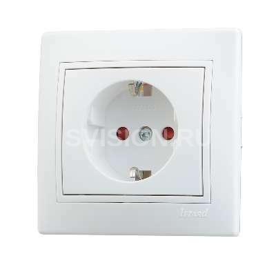 Описание Розетка 1-м СП Мира 16А IP20 с заземл. защ. шторки с бел. вставкой керамика бел. LEZARD 701-0202-124