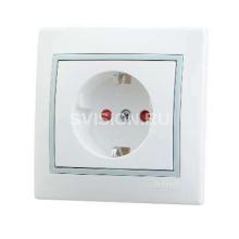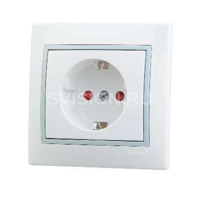 Описание Розетка 1-м СП Мира 16А IP20 с заземл. защ. шторки с сер. вставкой керамика бел. LEZARD 701-0215-124