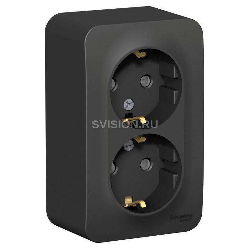 Описание Розетка 2-м ОП Blanca 16А IP20 250В с заземл. защ. шторки с изолир. пластиной антрацит SE BLNRA011216