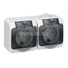 Описание Розетка 2-м ОП Этюд 16А IP44 250В с заземл. защ. шторки сер. SE PA16-244C