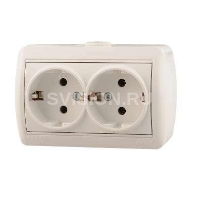 Описание Розетка 2-м ОП Ната 16А IP20 с заземл. керамика бел. LEZARD 710-0200-127