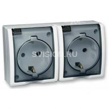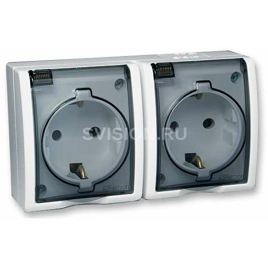 Описание Розетка 2-м ОП Simon15 16А IP54 250В с заземл. с крышкой винт. клеммы бел. Simon 1594433-030