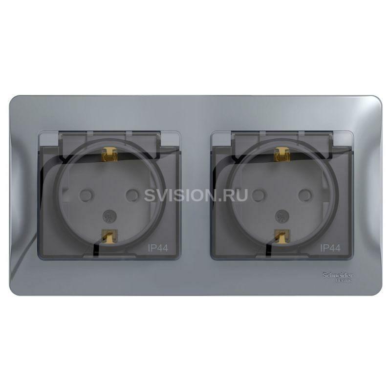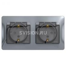 Описание Розетка 2-м СП 2мод. Glossa 16А IP44 с заземл. защ. шторки в сборе алюм. SE GSL000347