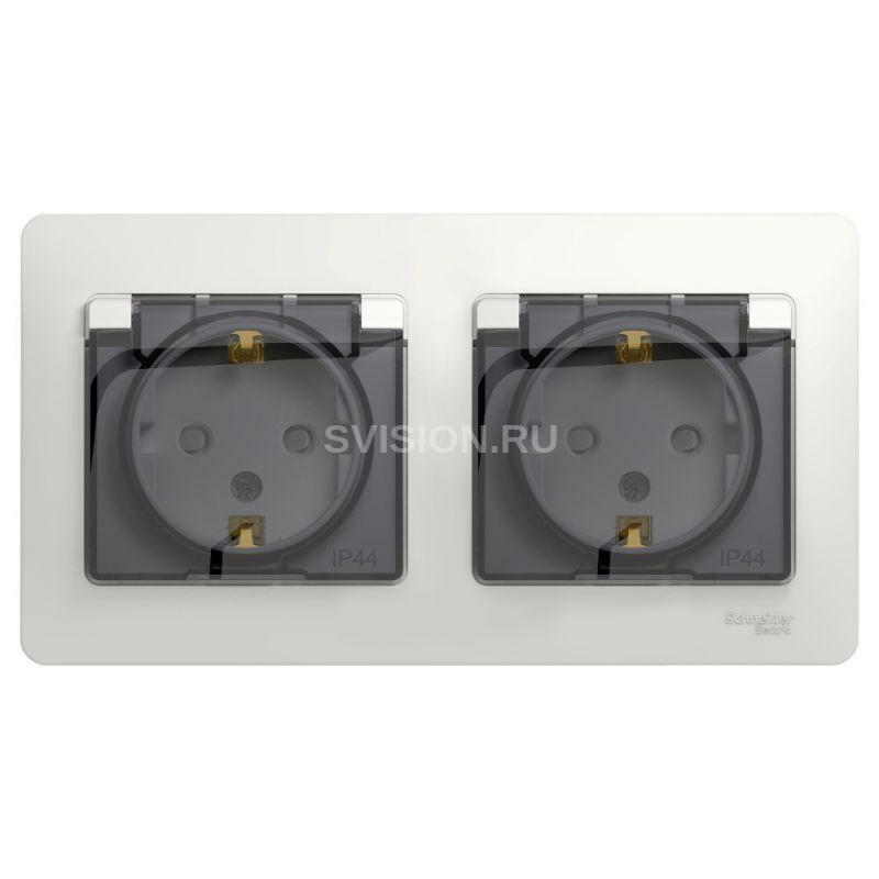 Описание Розетка 2-м СП 2мод. Glossa 16А IP44 с заземл. защ. шторки в сборе бел. SE GSL000147