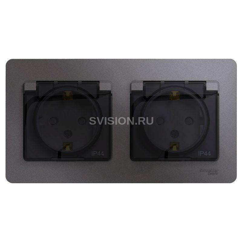 Описание Розетка 2-м СП 2мод. Glossa 16А IP44 с заземл. защ. шторки в сборе графит SE GSL001347
