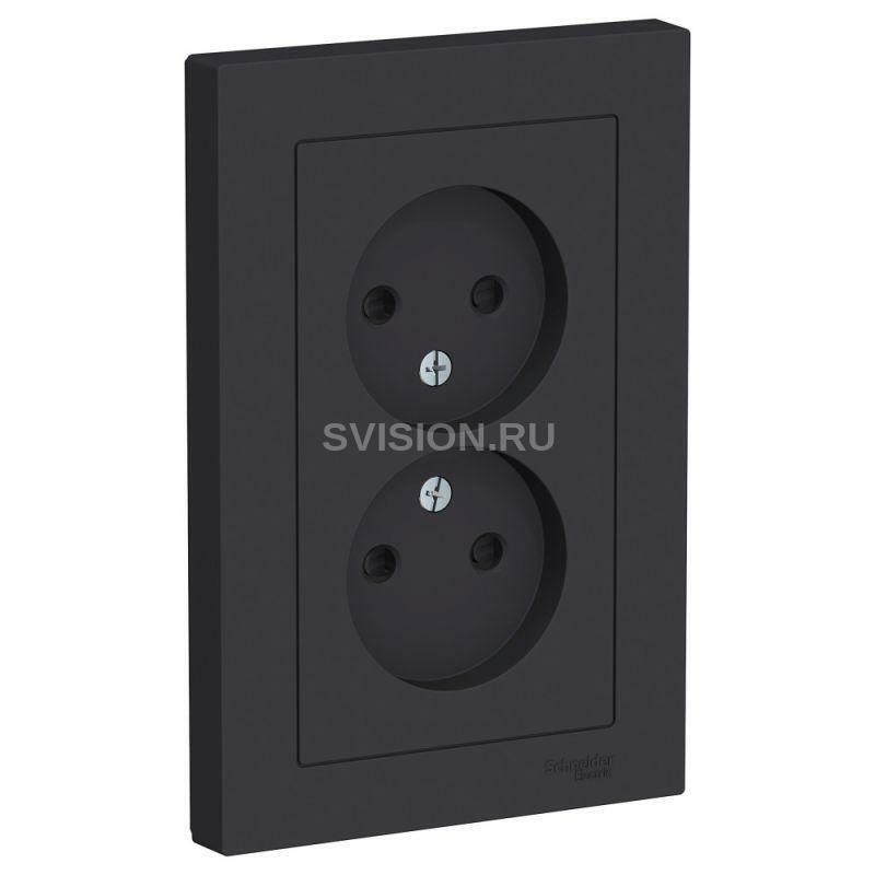 Описание Розетка 2-м СП AtlasDesign 16А IP20 без заземл. защ. шторки в сборе карбон SE ATN001022