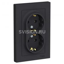 Описание Розетка 2-м СП AtlasDesign 16А IP20 с заземл. в сборе карбон SE ATN001024