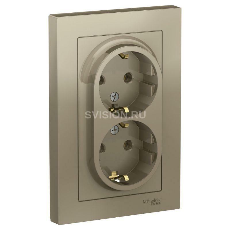 Описание Розетка 2-м СП AtlasDesign 16А IP20 с заземл. в сборе шампань SE ATN000524