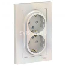 Описание Розетка 2-м СП AtlasDesign 16А IP20 с заземл. защ. шторки в сборе жемчуж. SE ATN000426
