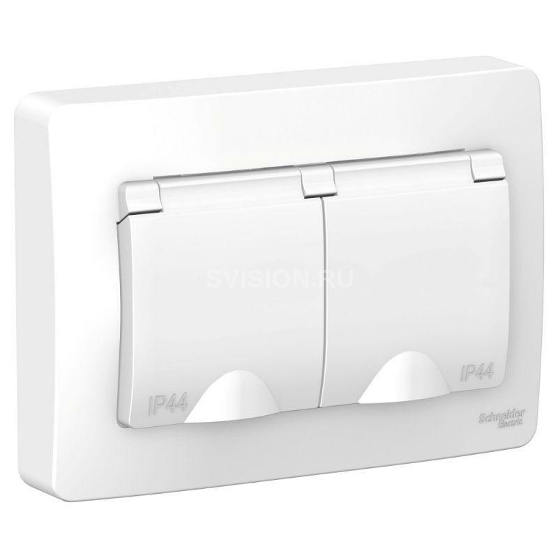 Описание Розетка 2-м СП Blanca 16А IP44 250В с заземл. защ. шторки с крышкой бел. SE BLNRS441121