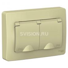 Описание Розетка 2-м СП Blanca 16А IP44 250В с заземл. защ. шторки с крышкой беж. SE BLNRS441127