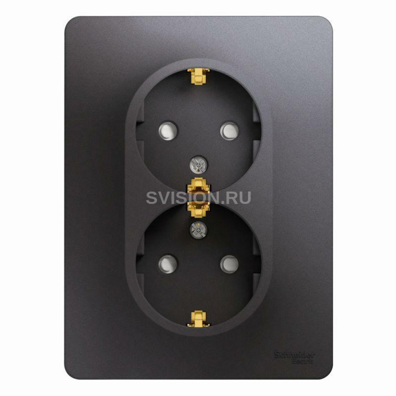 Описание Розетка 2-м СП Glossa 16А IP20 250В с заземл. защ. шторки в сборе графит SE GSL001326