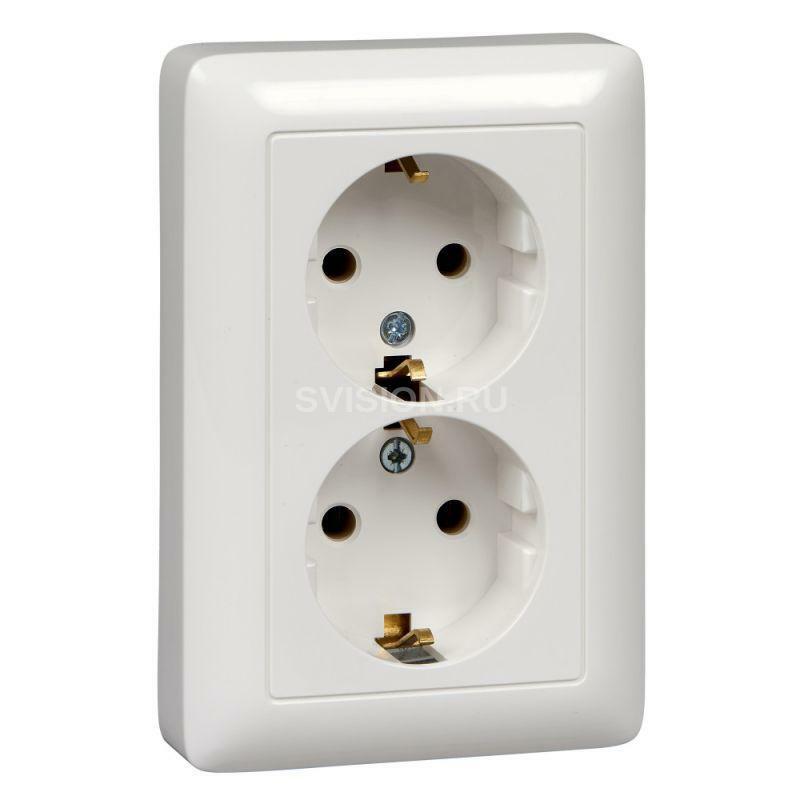 Описание Розетка 2-м СП Хит 16А 250В с заземл. без защ. шторок бел. SE RS16-236-B