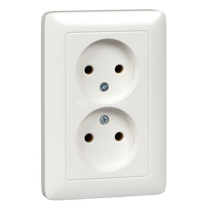 Описание Розетка 2-м СП Хит 16А IP21 250В без заземл. без защ. шторок бел. SE RS16-235-B
