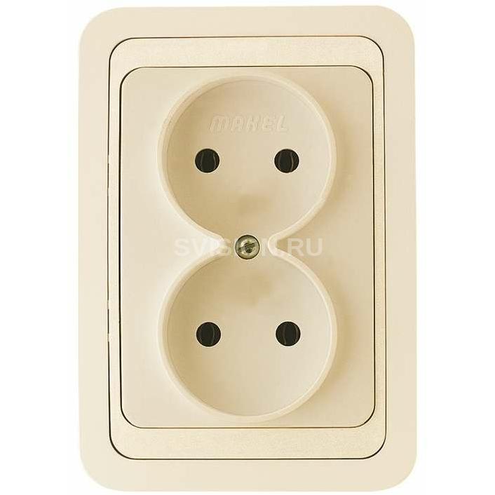 Описание Розетка 2-м СП Mimoza 16А IP20 без заземл. крем./крем. Makel 25017