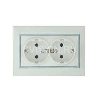 Описание Розетка 2-м СП Мира 16А IP20 с заземл. с сер. вставкой керамика бел. LEZARD 701-0215-127