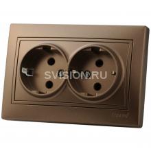 Описание Розетка 2-м СП Мира 16А IP20 с заземл. со вставкой керамика свет. корич. перламутр. LEZARD 701-3131-127