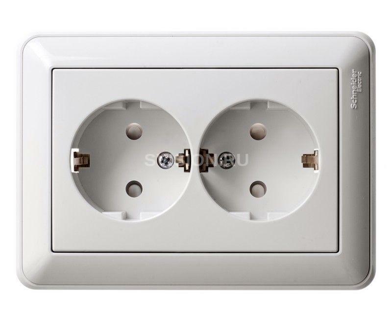 Описание Розетка 2-м СП W59 16А IP20 с заземл. защ. шторки в сборе бел. SE RS16-255-18