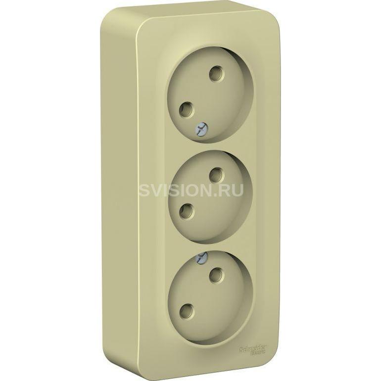 Описание Розетка 3-м ОП Blanca 16А IP20 250В без заземл. без защ. шторок с изолир. пластиной беж. SE BLNRA000317