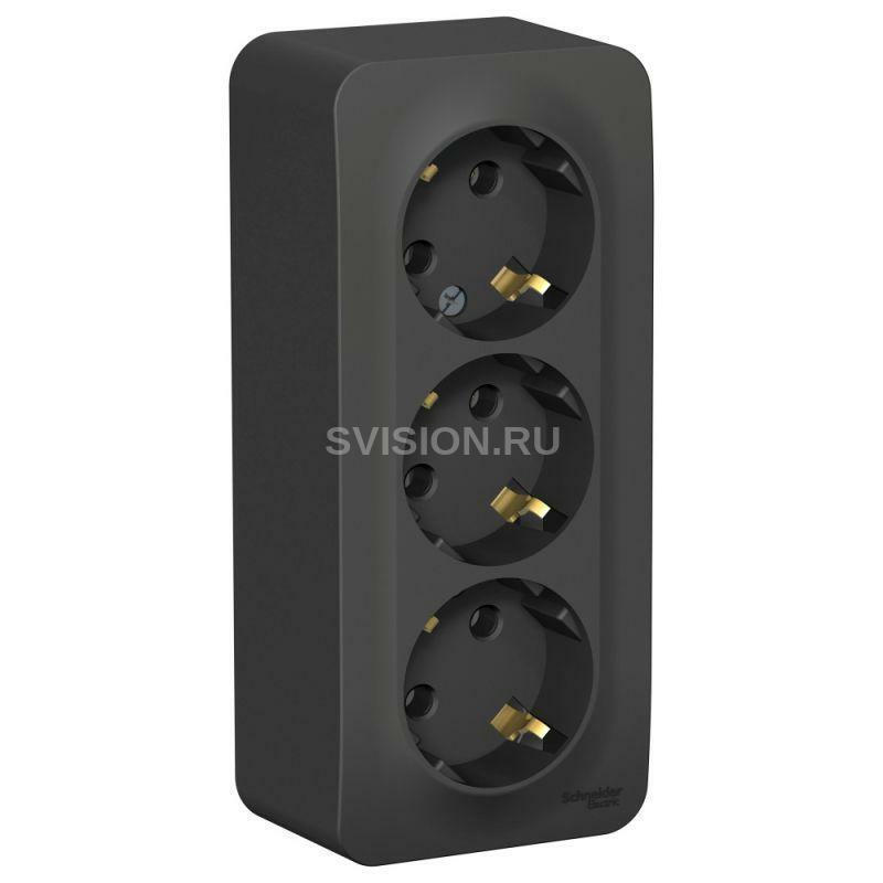 Описание Розетка 3-м ОП Blanca 16А IP20 250В с заземл. без защ. шторок с изолир. пластиной антрацит SE BLNRA010316