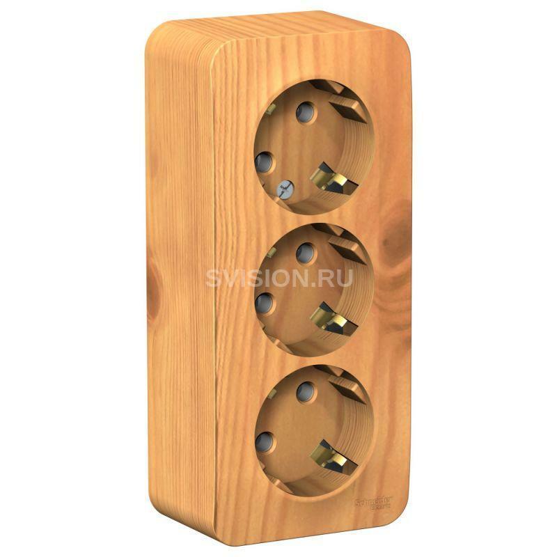 Описание Розетка 3-м ОП Blanca 16А IP20 250В с заземл. без защ. шторок с изолир. пластиной ясень SE BLNRA010315