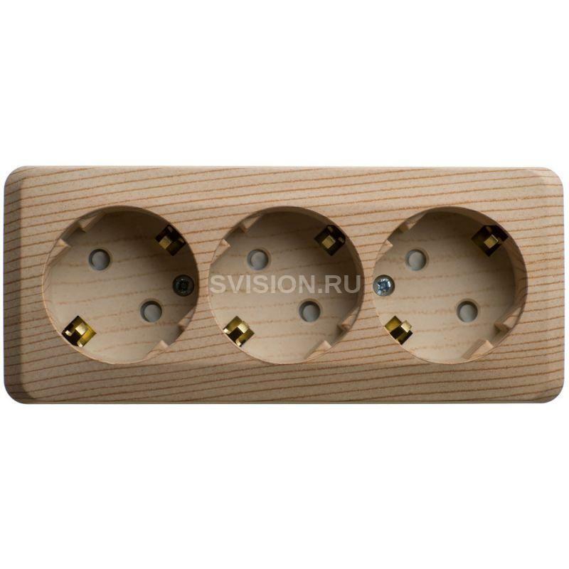 Описание Розетка 3-м ОП Этюд 16А IP20 250В с заземл. защ. шторки сосна SE PA16-012D