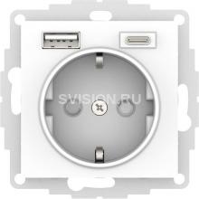 Описание Розетка AtlasDesign 16А с 2-мя заряд. устройствами USB тип A+C 5В/2.4А 2х5В/1.2А механизм бел. SE ATN000132