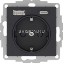 Описание Розетка AtlasDesign 16А с 2-мя заряд. устройствами USB тип A+C 5В/2.4А 2х5В/1.2А механизм карбон SE ATN001032