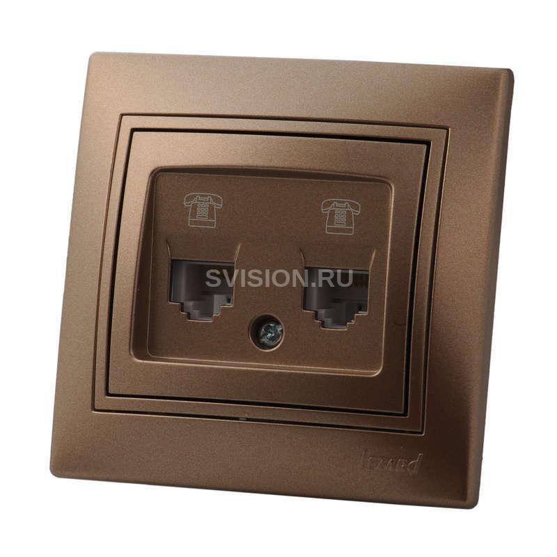 Описание Розетка телефонная 2-м СП Mira RJ11 16А IP20 евро стандарт со вставкой свет. корич. перламутр. LEZARD 701-3131-138