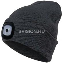 Описание Шапка с фонариком 215х205х5 черн. (фонарь 66х50х15мм снимается; аккум. 3.7В/200мА.ч) 3 режима свечения Космос KOCHat_black