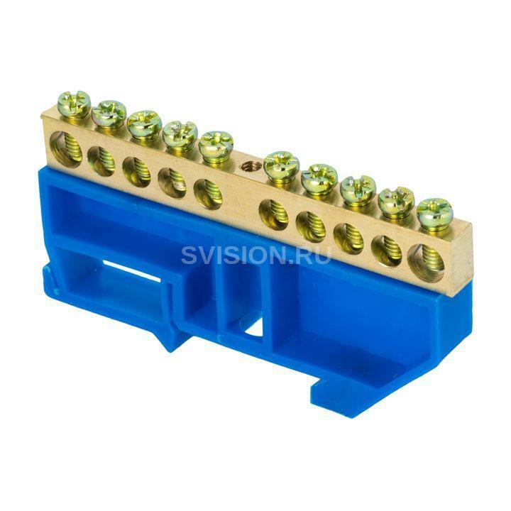 Описание Шина нулевая N 6х9 10 отверстий синий изолятор на DIN-рейку латунь розн. стикер PROxima EKF sn0-63-10-d-r