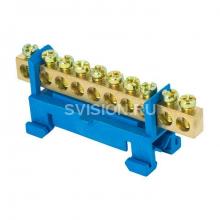 Описание Шина нулевая N 6х9 10 отверстий синий изолятор тип "Стойка" на DIN-рейку латунь PROxima EKF sn0-63-10-sb